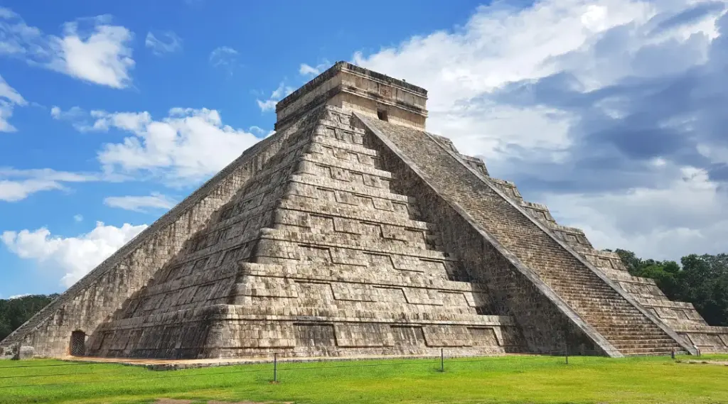 Já Chichén Itzá, uma das sete maravilhas do mundo moderno, conta com pirâmides e monumentos históricos impressionantes.